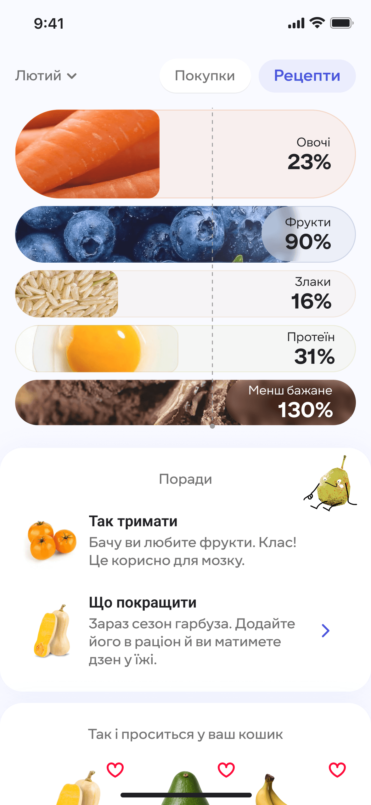 На основі даних гість отримує підказки, що купити наступного разу, аби збалансувати раціон і мати сили для звершень.
